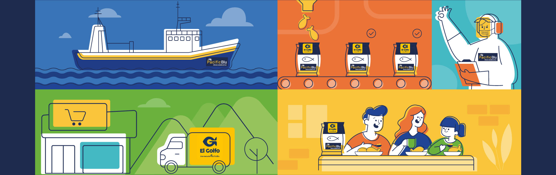 PacificBlu es una empresa de alimentos del mar, la que ha destacado en los últimos años como la principal productora de alimentos con valor agregado en base a merluza común. Cuenta con un sistema de captura selectivo y sostenible y el 100% de su producción está destinada al consumo humano directo, productos que son distribuidos a lo largo de todo Chile a través de su marca El Golfo.